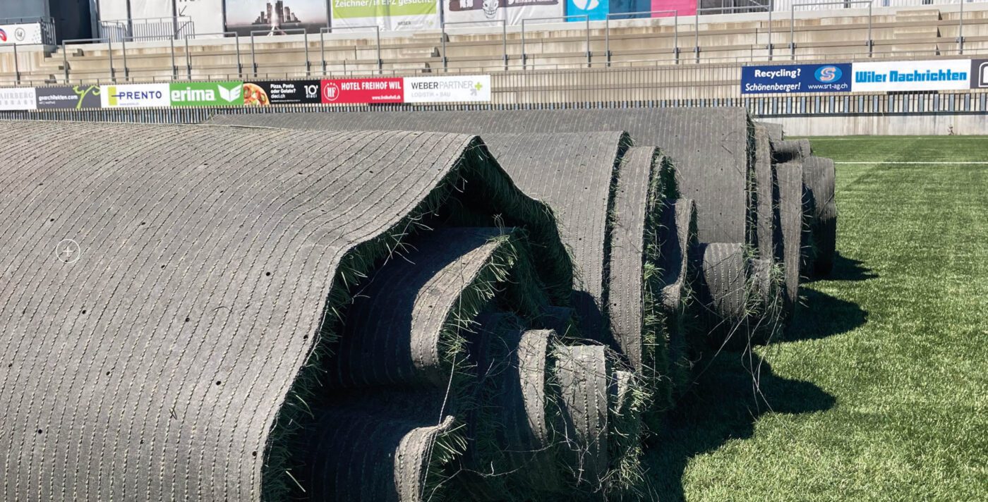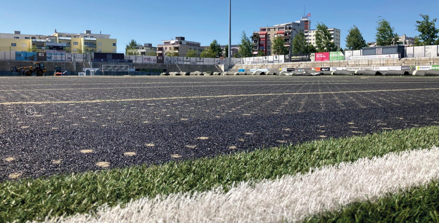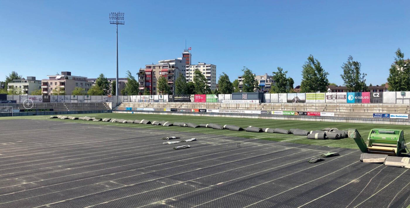 Trotz Sommerpause wird auf dem Kunstrasen im Sportpark Bergholz fleissig gearbeitet. Wie bereits kommuniziert, erhält der FC Wil 1900 auf die kommende Saison eine neue Unterlage.