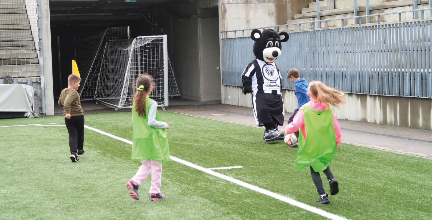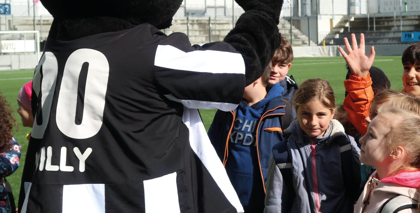 Als kleine Abwechslung zu den Schreibübungen wurde die Klasse auf eine Sportstunde ins Stadion eingeladen. Die Schüler hatten am Parcours, den unser Co-Trainer Romain Villiger zusammengestellt hat, und dem „Mätchli“ sichtlich Spass. Unser Maskottchen Willy war für das Anfeuern zuständig. Zum Schluss erhielten alle Kinder ein Fan-Shirt als Erinnerung an die unterhaltsame Trainingseinheit. Beim Unterschriften-Sammeln war Willy am beliebtesten, wobei die unsaubere Schreibtechnik mehrmals zur Sprache kam. Willy hat daher versprochen, in nächster Zeit für eine Schönschreib-Lektion vorbeizuschauen.