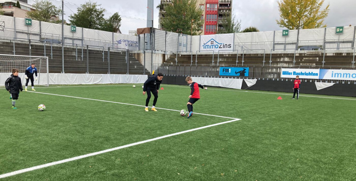 Vor dem wichtigen Heimspiel vergangenen Freitag gegen Neuenburg Xamax empfing der FC Wil 1900 Besuch aus dem Toggenburg. Im Rahmen des Ferienprogramms der Gemeinde Bütschwil organisierte der FC Wil 1900 für Mädchen und Knaben zwischen 8 – 14 Jahren einen unterhaltsamen Fussball-Nachmittag. Konzipiert und geleitet vom Co-Trainer der ersten Mannschaft, Romain Villiger, erlebten die fussballerbegeisterten Kids eine professionelle Trainingseinheit. Tatkräftig unterstützt wurde Romain von Profi-Spielern der 1. Mannschaft. Mit grossem Engagement und Freude zeigten Sie dem Nachwuchs fussballerische Tipps und Tricks.
