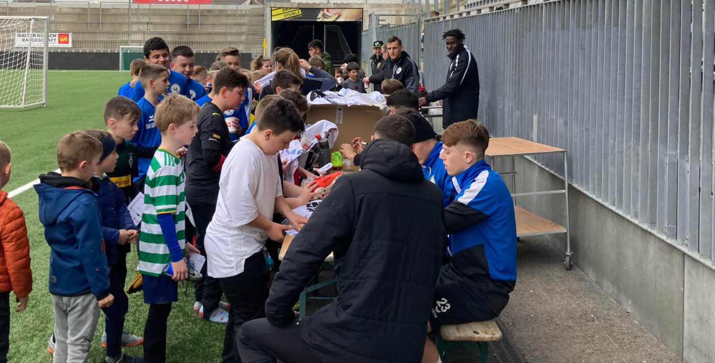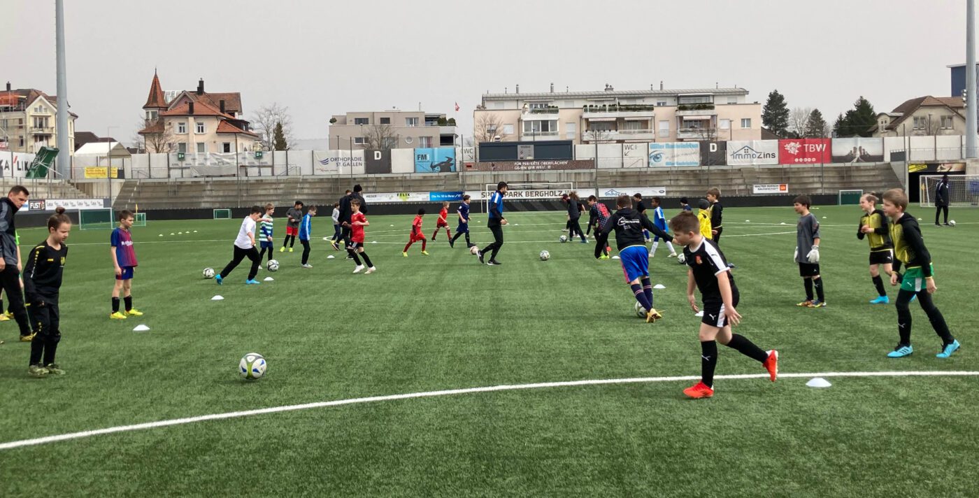 Bei sommerhaften Temperaturen fand gestern Nachmittag erneut eine Ausgabe unseres «Training mit den Profis» statt. Neben dem aktuellen Challenge League-Topscorer Valon Fazliu waren fünf weitere Akteure der 1. Mannschaft für einmal in der Rolle des Trainers. Über 50 Mädchen & Knaben unterschiedlichen Alters erlebten dadurch einen fussballintensiven Nachmittag.