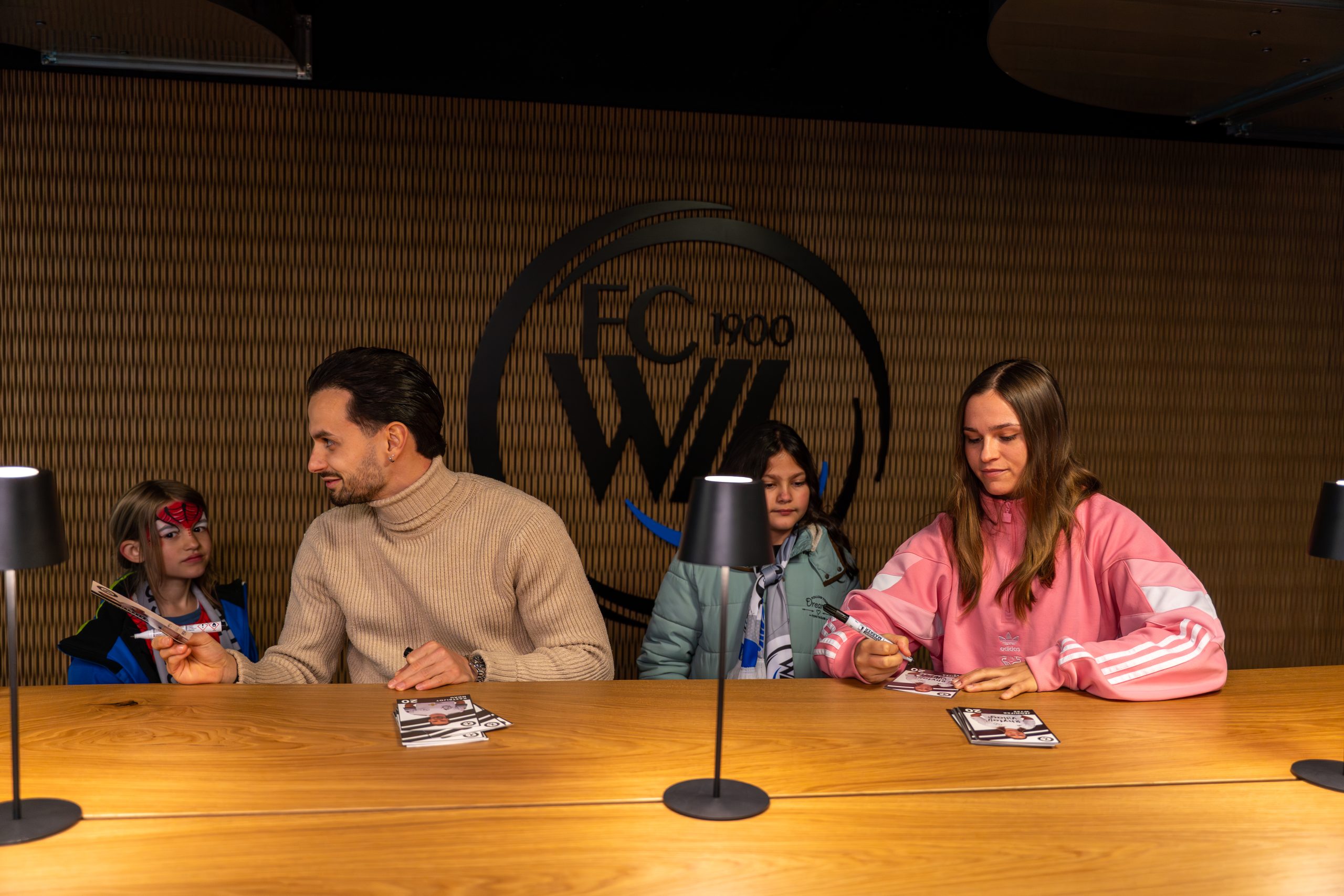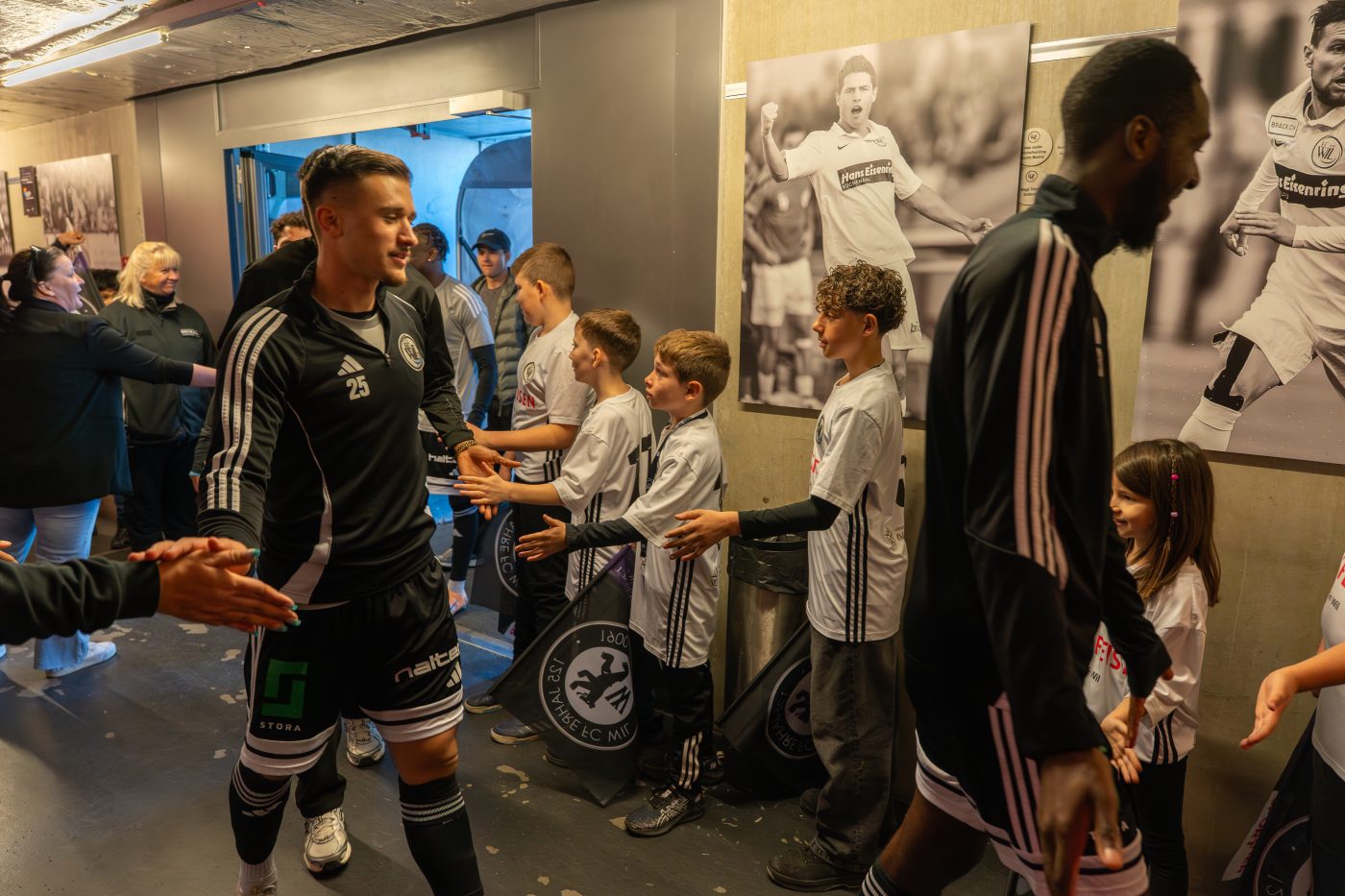 Das Einlaufen mit den Spielern fiel zwar leider kurzfristig ins Wasser – aber keine Sorge, dafür sorgte eine andere Überraschung umso mehr für strahlende Gesichter. Beim Meet & Greet mit unseren beiden Nr. 20 aus dem Männer- und Frauenteam – gleichzeitig unsere Kapitäne – gab’s trotzdem strahlende Gesichter! Autogramme, Fotos und unvergessliche Momente machten den Abend zu etwas ganz Besonderem.
