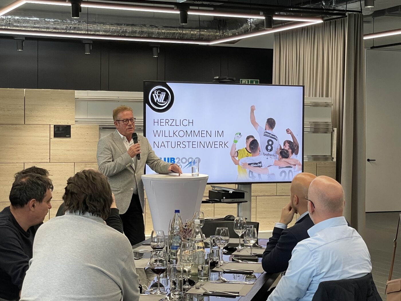 Am Donnerstag, 25. April 2024, durften wir den Club 2000 vom FC Wil zu einem exklusiven Business-Lunch in unserem Natursteinwerk in Matzingen begrüssen. Rund 50 Mitglieder des Clubs folgten der Einladung und erhielten spannende Einblicke in unser Unternehmen sowie die Gelegenheit, sich mit Geschäftspartnern auszutauschen.